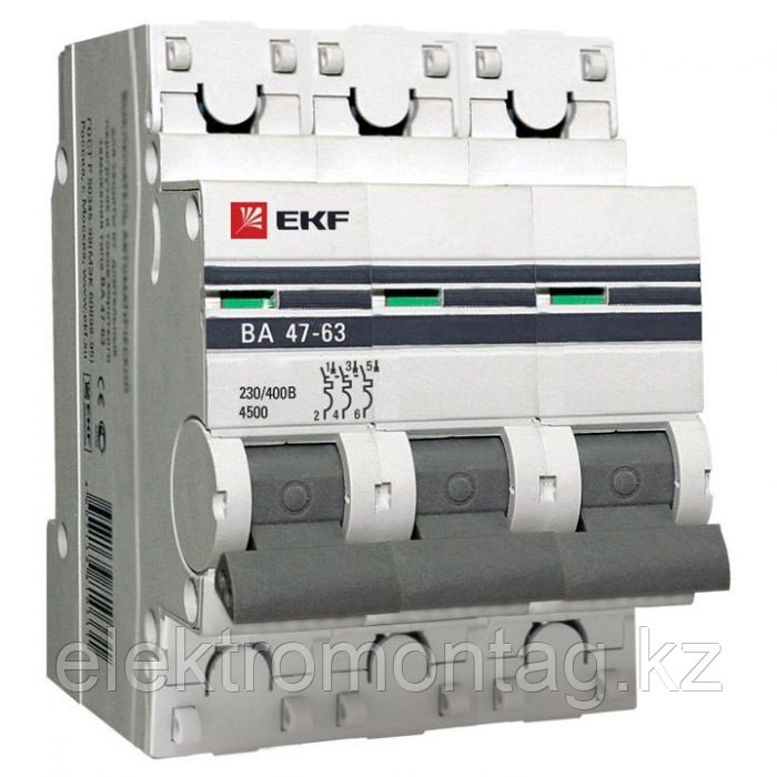 Модульный автоматический выключатель ВА 47-63, 3P 63А (C) EKF PROxima